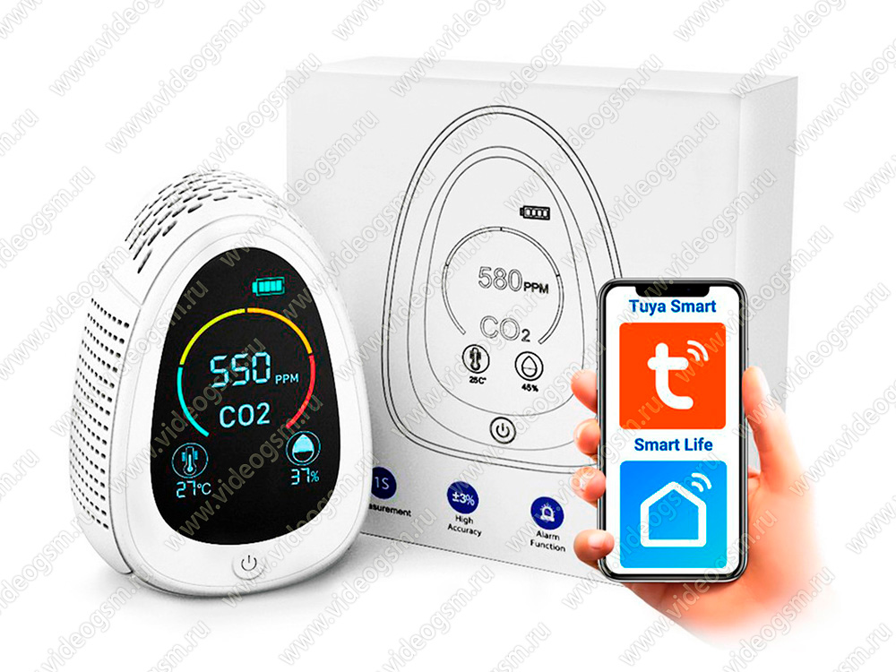 Благодаря встроенному модулю Wi-Fi, устройство можно подключить к сети интернет и удаленно, с помощью бесплатного мобильного приложения Tuya Smart/Smart Life, следить за показаниями прибора и управлять его настройками. При завышенной концентрации CO2, включится звуковое оповещение на самом устройстве, а также придёт тревожное уведомление на смартфон.
